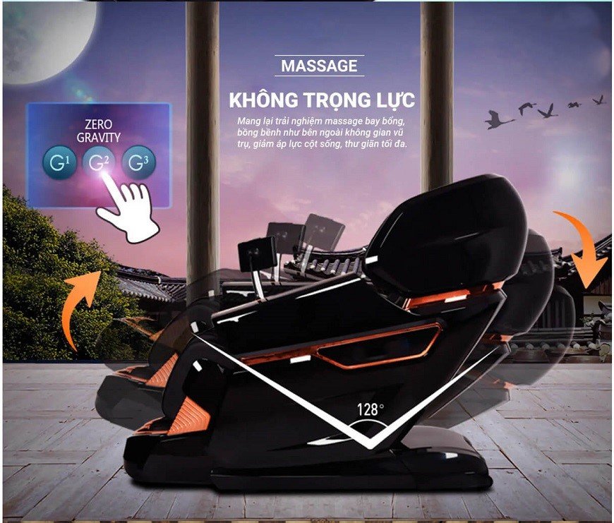 Chế độ massage không trọng lực của Fuji Care G99 Plus mang lại trải nghiệm massage bay bổng, bồng bềnh như bên ngoài không gian vũ là trạng thái massage tốt nhất. Chế độ này hỗ trợ giảm tối đa áp lực lên cột sống, thư giãn và kết hợp với nhiệt hồng ngoại sẽ phát huy tối đa hiệu quả massage cùng với góc mở chữ V là góc nghiêng hoàn hảo của phi hành gia hỗ trợ ngủ ngon và sâu giấc hơn.