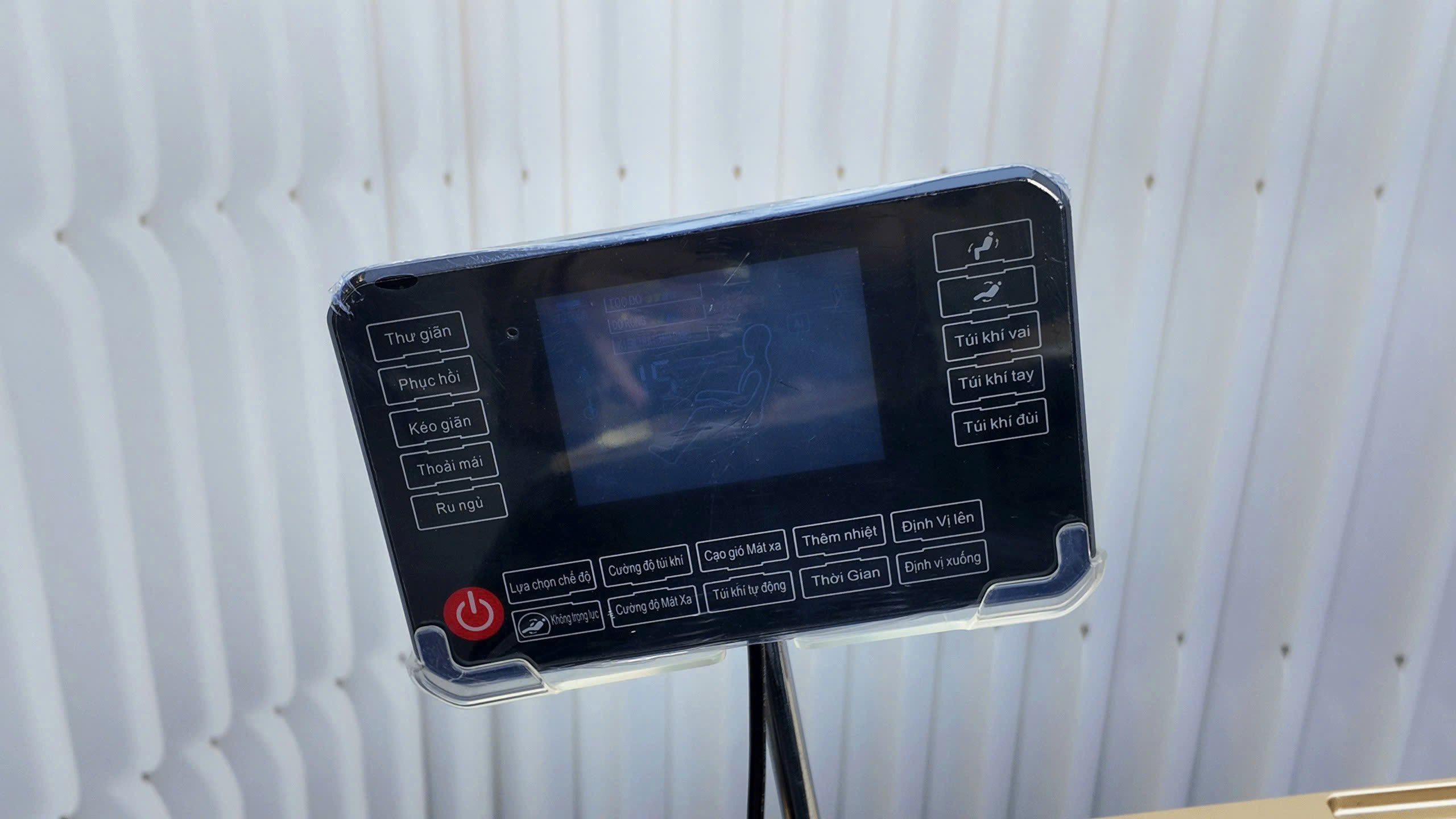 - Điều khiển nhanh trên thành ghế: Điều khiển nhanh trên thành ghế rút ngắn thời gian điều chỉnh các chế độ bằng những phím bấm như: tắt máy, tạm dừng, nhiệt hồng ngoại, điều chỉnh chế độ nâng hạ phần lưng và phần chân…