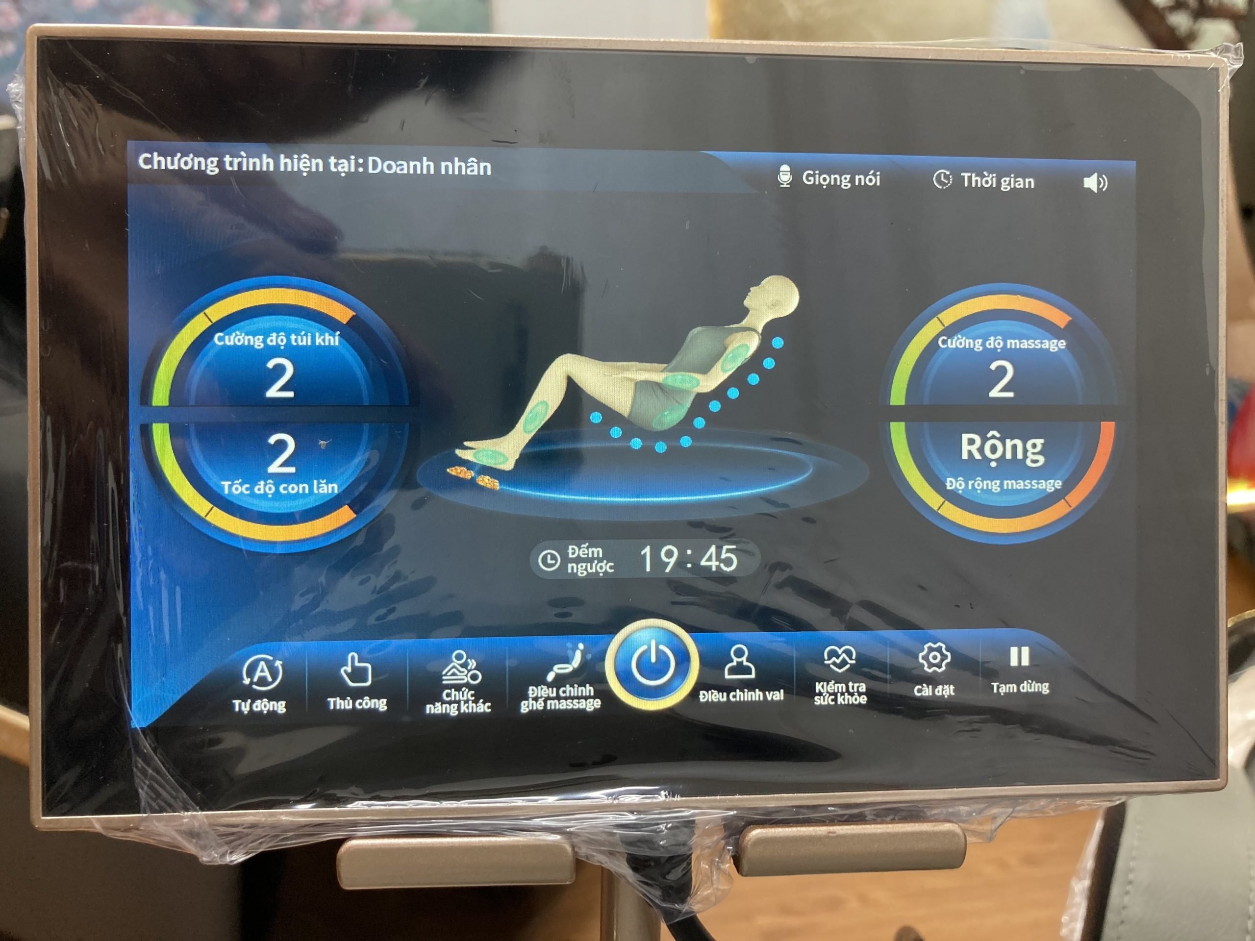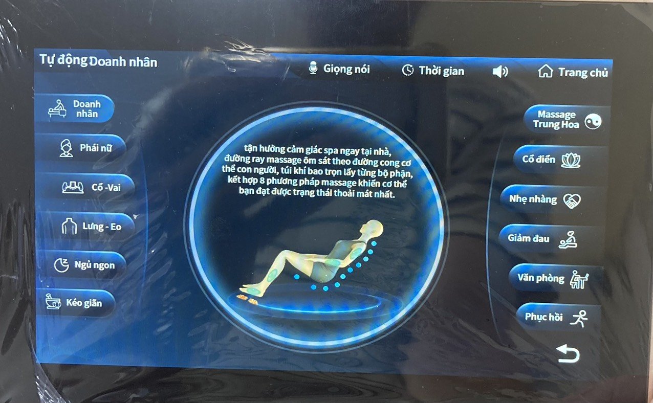 Màn hình điều khiển cảm ứng LCD mô phỏng một máy tính bảng mini, cảm biến cực nhạy, chỉ với một nút chạm là bạn có thể dễ dàng tùy chỉnh chương trình và bài tập massage như mong muốn. Màn hình hiển thị sắc nét, cho thấy quá trình ghế massage hoạt động một cách rõ ràng và chính xác.
