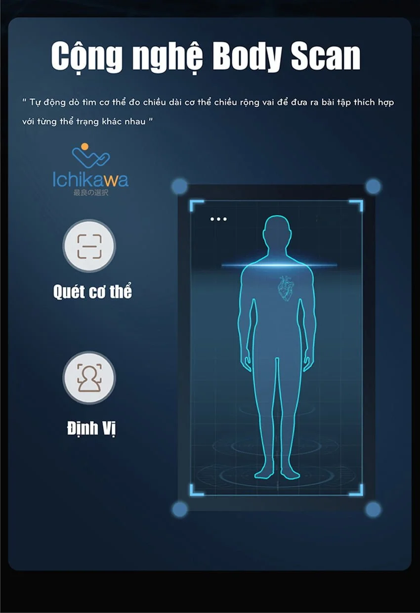 - Ứng dụng tiến bộ khoa học kỹ thuật, ghế massage ICHIKAWA IK-72 được trang bị công nghệ dò quét AI tiên tiến hàng đầu, được xem là một trong những điểm cải tiến vượt bậc so với các sản phẩm ghế massage cùng phân khúc trên thị trường.