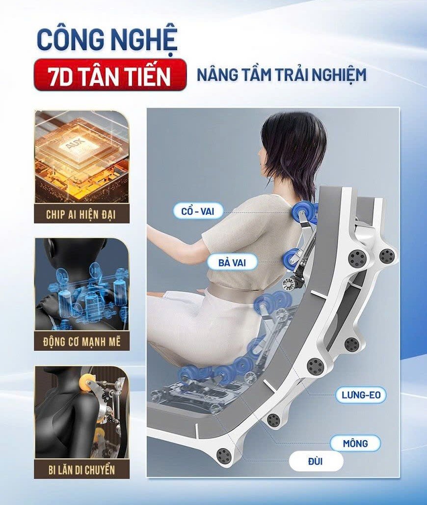 + Công nghệ massage 5D hiện đại, mô phỏng kỹ thuật massage chân thực như bàn tay chuyên gia chuẩn y khoa.