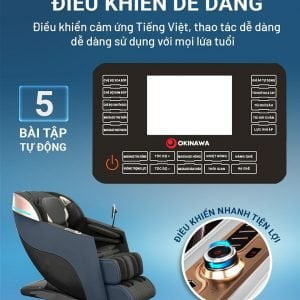 OKINAWA OS -158 sử dụng màn hình điều khiển cảm ứng + giọng nói giúp cho người dùng dễ dàng sử dụng 1 cách nhanh chóng , phím điều khiển phụ hỗ trợ người cao tuổi sử dụng không quá cầu kì dễ sử dụng
