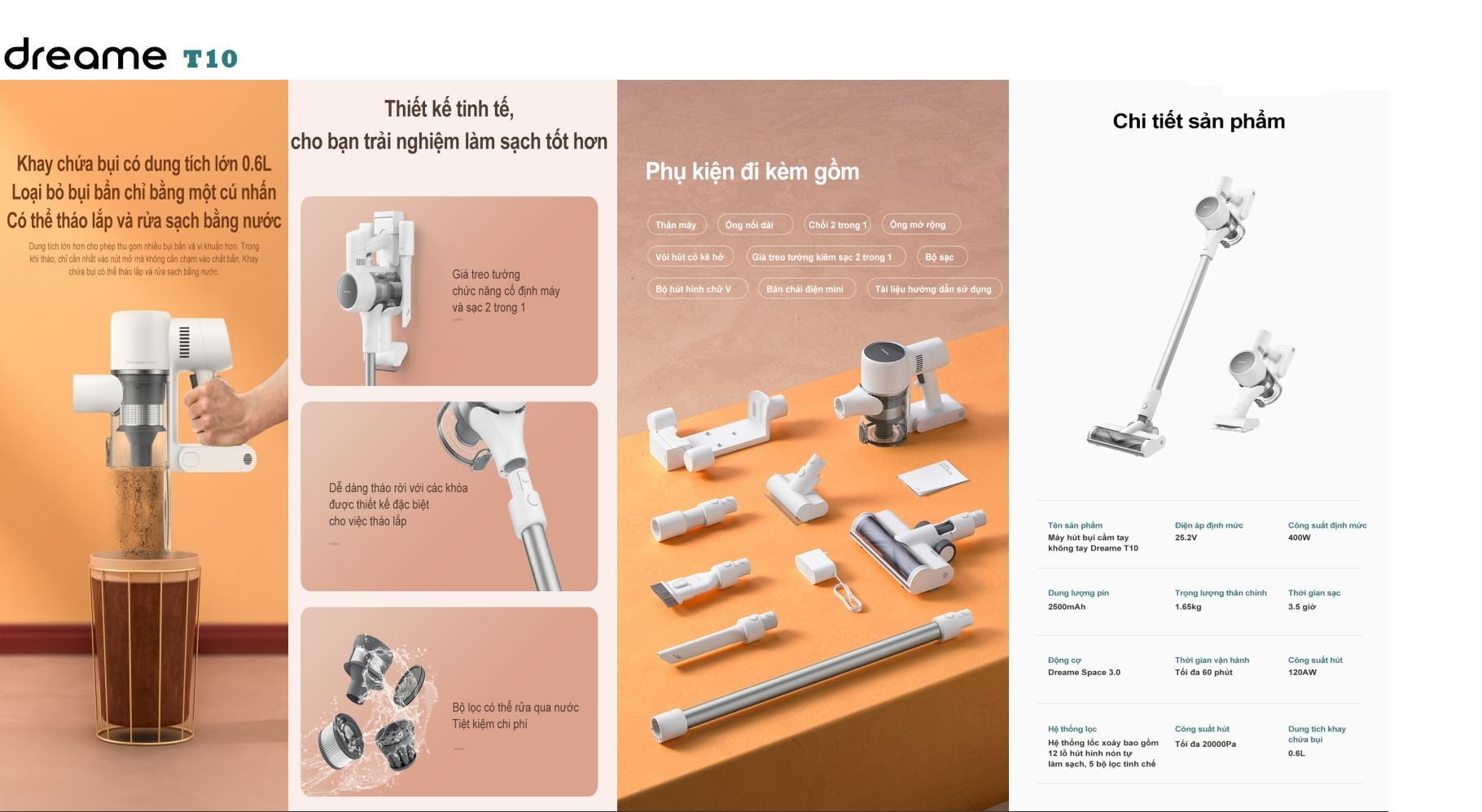 Thông tin về Máy Hút Bụi Không Dây Cầm Tay Dreame T10 – Hàng Phân Phối Chính Hãng